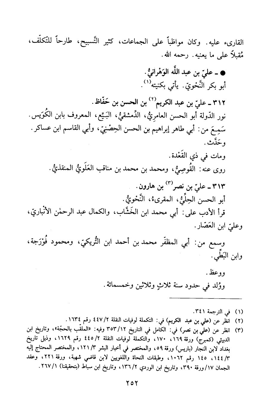 312- عَليّ بن عَبْد الكريم [2] بن الحَسَن بن حَفّاظ.