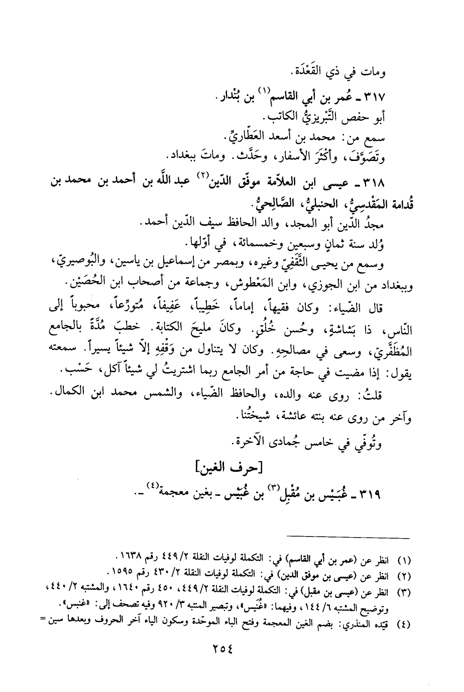 318- عيسى ابن العلّامة مُوَفَّق الدِّين [2] عَبْد اللَّه بْن أَحْمَد بْن مُحَمَّد بْن قُدامة المَقْدِسِيّ، الحَنْبَلِيّ، الصَّالحيّ.