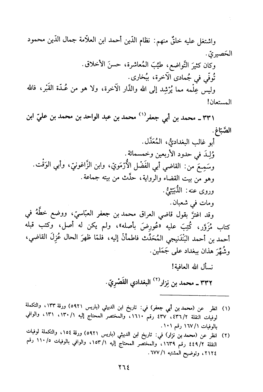 وَلَيْسَ عِلْمه مما يرشد إلى الله والدّار الآخرة، ولا هُوَ من عُدَّة القبر، فاللَّه المستعان! 331- مُحَمَّد بن أَبِي جَعْفَر [1] مُحَمَّد بْن عَبْد الواحد بْن مُحَمَّد بْن عَلِيّ ابن الصَّبَّاغ.
