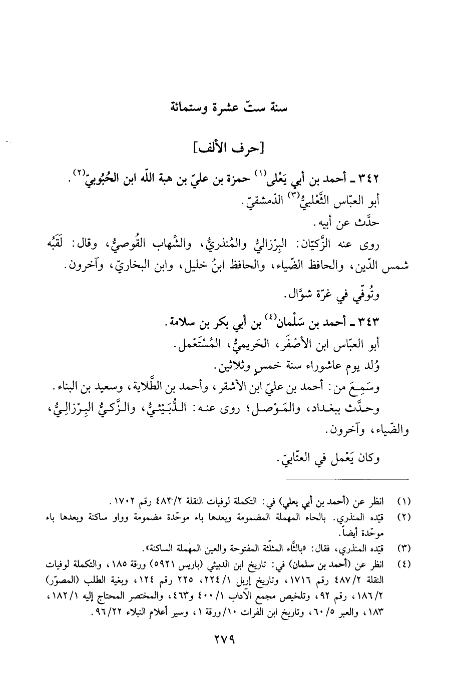 342- أَحْمَد بن أَبِي يَعْلَى [1] حمزة بن عليّ بن هبة الله ابن الحُبُوبيّ [2] .