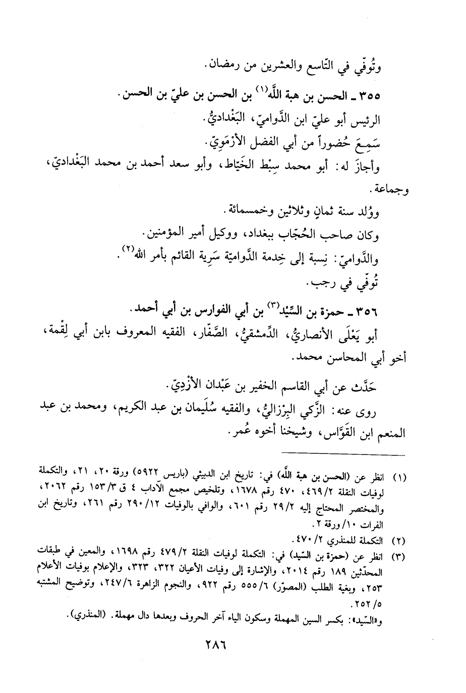 355- الحَسَن بْن هبة اللَّه [1] بْن الْحَسَن بْن على بن الحسن.