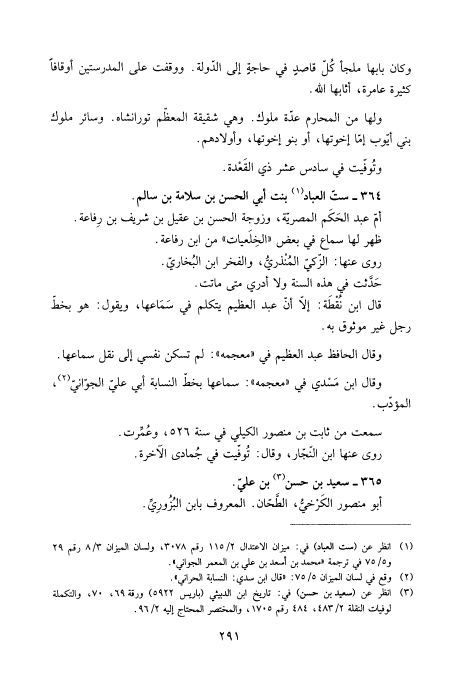 364- ستّ العباد [1] بنت أَبِي الحَسَن بن سلامة بن سالم.