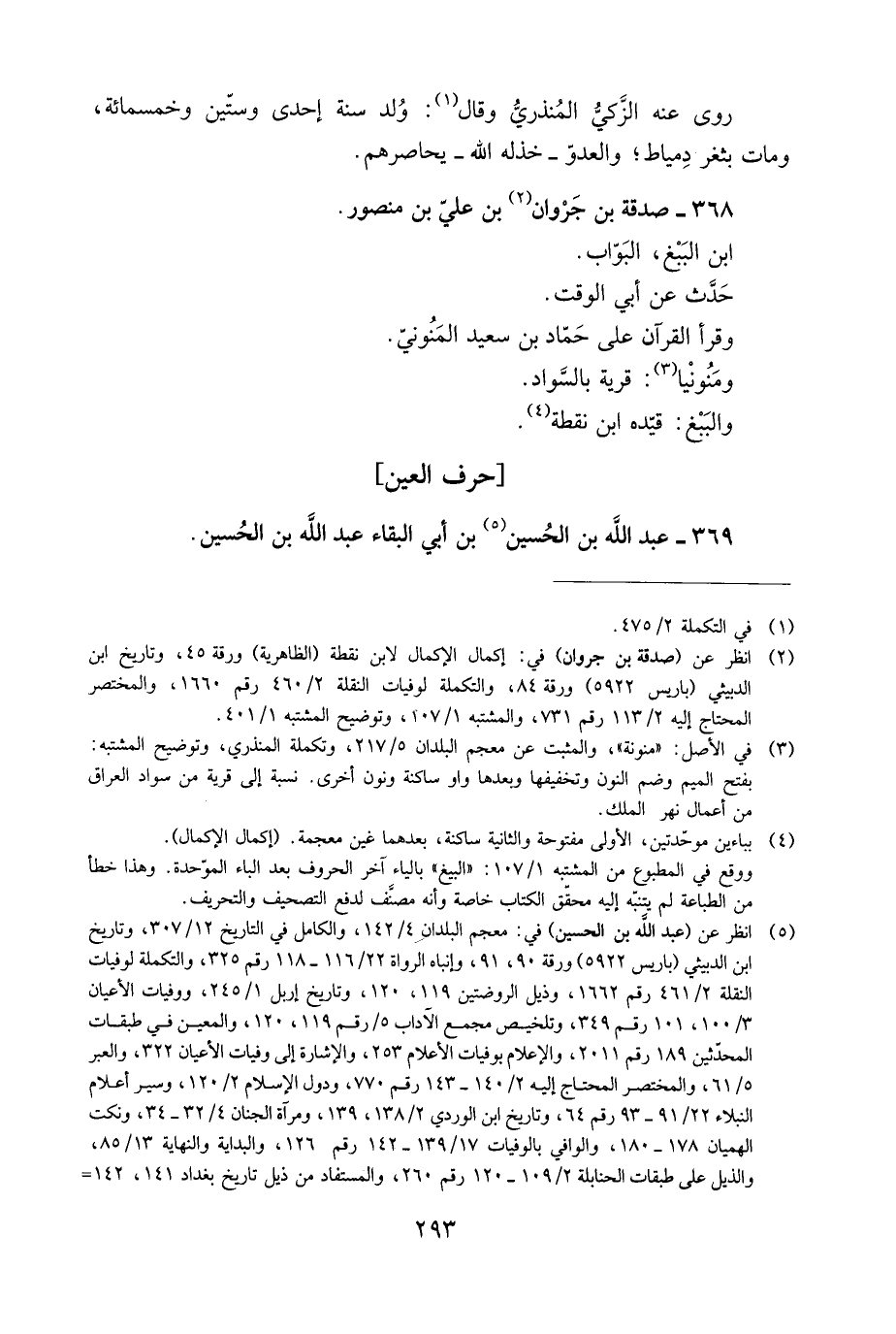 [2] انظر عن (صدقة بن جروان) في: إكمال الإكمال لابن نقطة (الظاهرية) ورقة 45، وتاريخ ابن الدبيثي (باريس 5922) ورقة 84، والتكملة لوفيات النقلة 2/ 460 رقم 1660، والمختصر المحتاج إليه 2/ 113 رقم 731، والمشتبه 1/ 107، وتوضيح المشتبه 1/ 401.