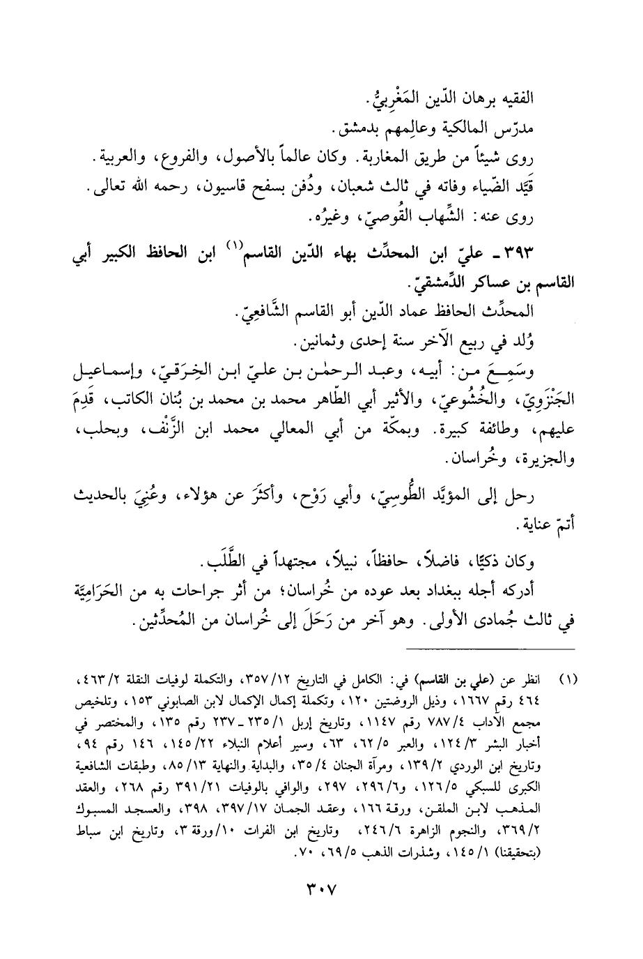 393- عَليّ ابن المحدِّث بهاء الدِّين الْقَاسِم [1] ابن الحَافِظ الكبير أَبِي الْقَاسِم بْن عساكر الدِّمَشْقِيّ.