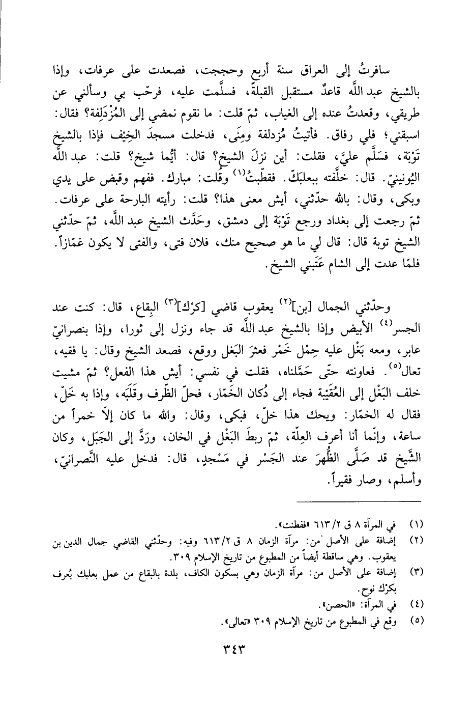 اسبقني، فلي رفاق. فأتيت مزدلفة ومنى، فدخلت مسجد الخيف فإذا بالشيخ تَوْبة، فسلَّم عَليّ، فَقُلْتُ: أَيْنَ نزلَ الشَّيْخ؟ قَالَ: أيُّما شيخ؟ قُلْتُ: عَبْد اللَّه اليُونينيّ. قَالَ: خلَّفته ببَعْلَبَكّ. فقطّبتُ [1] وَقُلْتُ: مبارك. ففهم وقبض عَلَى يدي وبكى، وقَالَ: باللَّه حَدَّثَني، أيش معنى هذا؟ قُلْتُ: رأيته البارحة عَلَى عرفات.