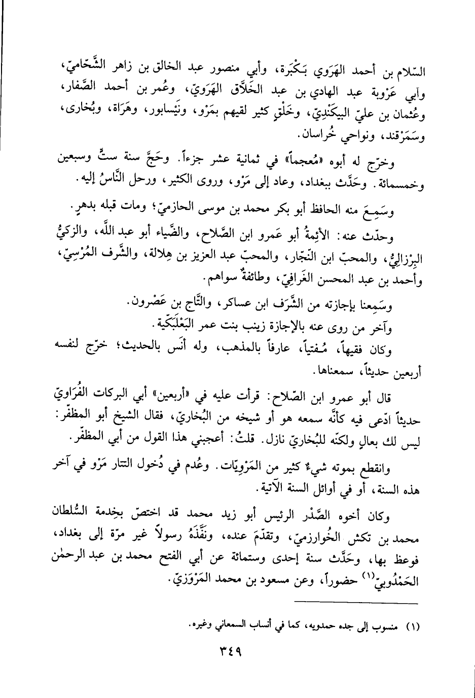 وخرّج لَهُ أَبُوه «مُعجمًا» في ثمانية عشر جزءا. وحجّ سنة ستّ وسبعين وخمسمائة. وحدَّث ببَغْدَاد، وعاد إلى مَرْو، وَرَوَى الكثير، ورحل النَّاس إِلَيْهِ.