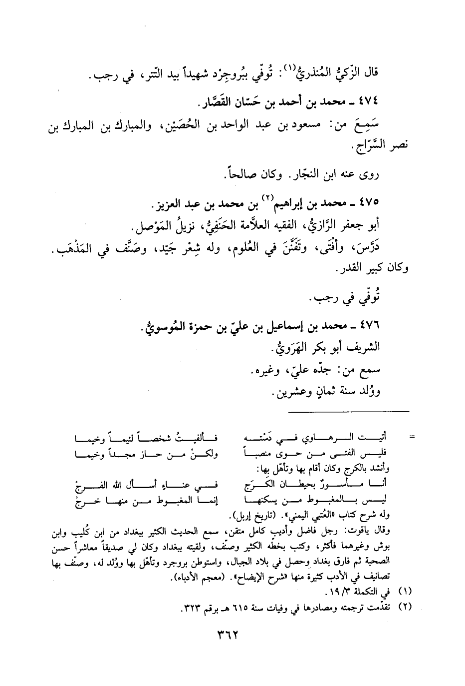 قَالَ الزَّكيّ المُنْذِريّ [1] : تُوُفِّي ببُروجِرْد شهيدا بيد التَّتَر، في رجب.