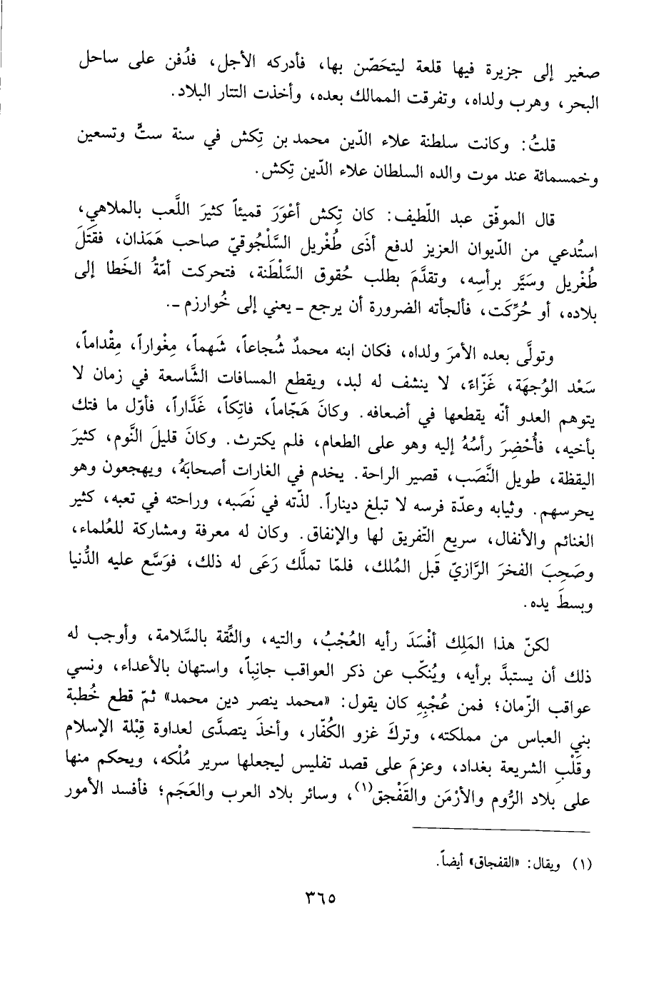 قُلْتُ: وكانت سلطنة علاء الدِّين مُحَمَّد بن تكش في سنة ستّ وتسعين وخمسمائة عند موت والده السُّلْطَان علاء الدِّين تِكش.