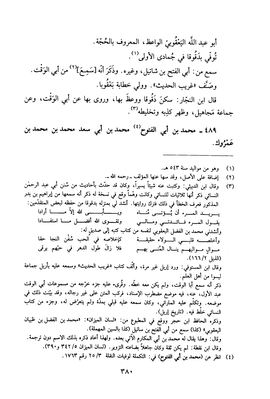 489- مُحَمَّد بن أَبِي الفتوح [4] مُحَمَّد بْن أَبِي سَعْد مُحَمَّد بْن مُحَمَّد بْن عمروك.