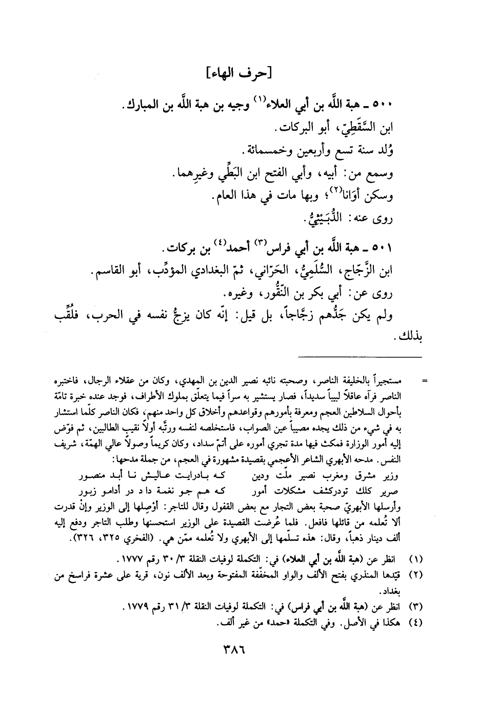 501- هبة اللَّه بن أَبِي فراس [3] أَحْمَد [4] بن بركات.