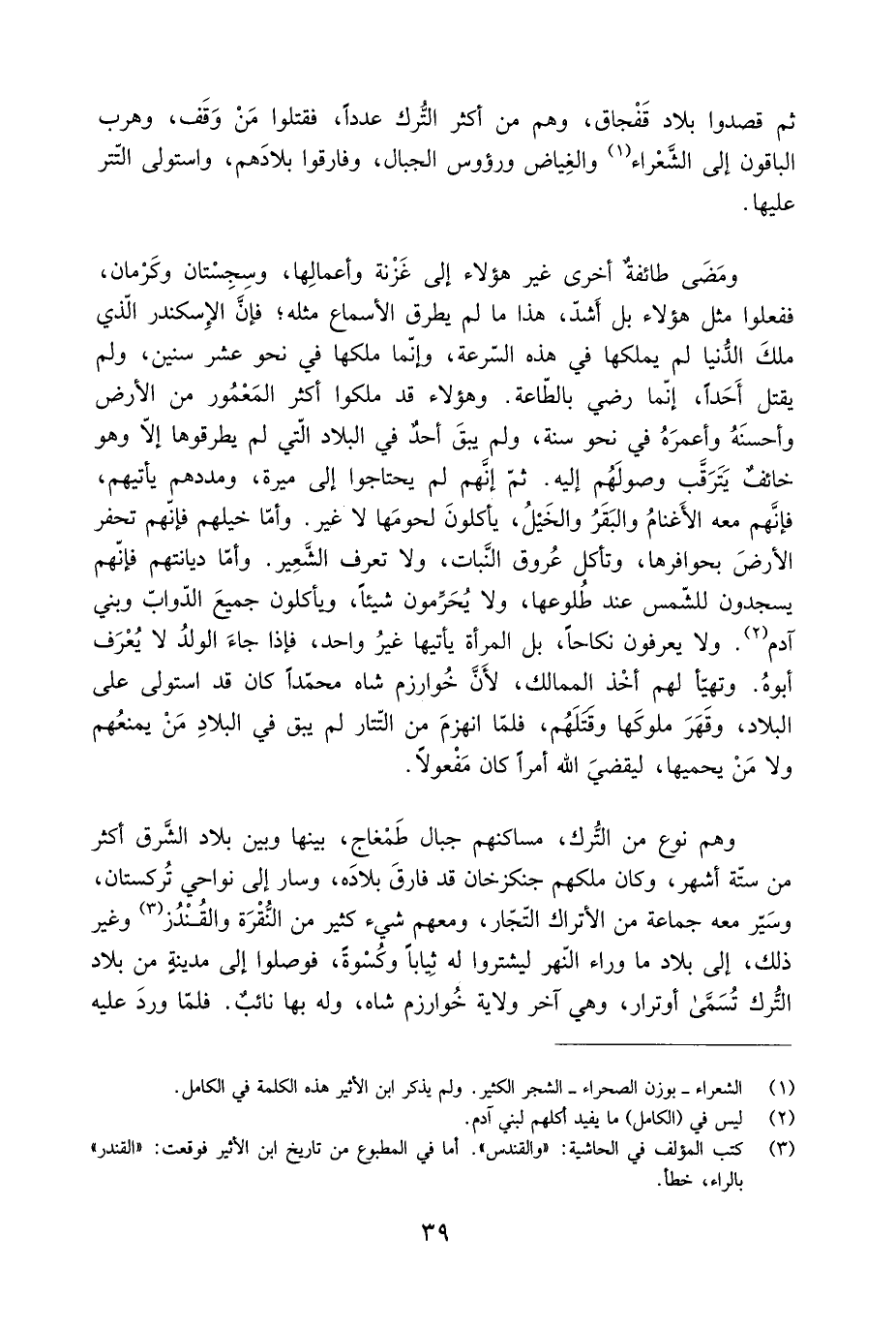 [3] كتب المؤلف في الحاشية: «والقندس» . أما في المطبوع من تاريخ ابن الأثير فوقعت: «القندر» بالراء، خطأ.