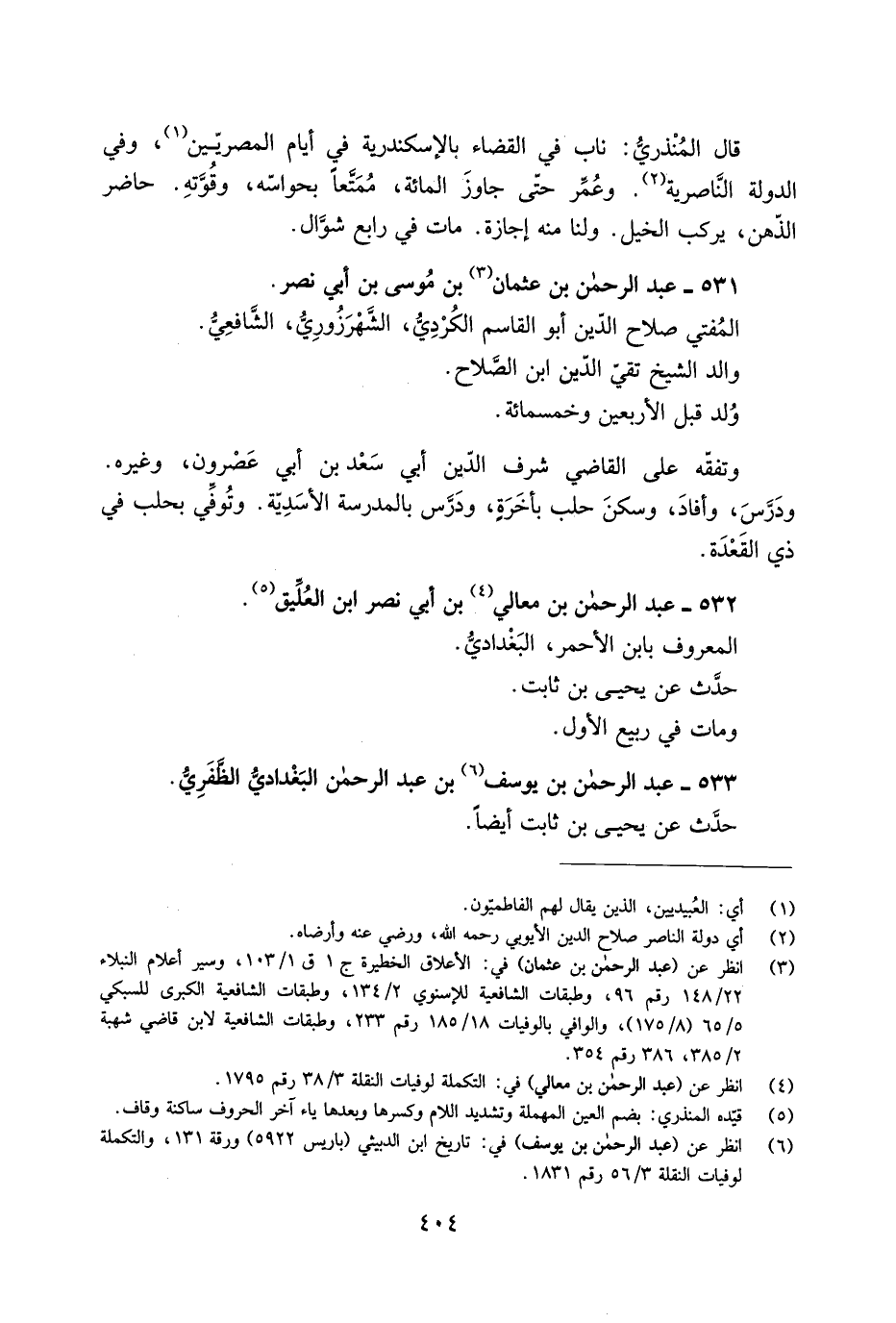 [6] انظر عن (عبد الرحمن بن يوسف) في: تاريخ ابن الدبيثي (باريس 5922) ورقة 131، والتكملة لوفيات النقلة 3/ 56 رقم 1831.