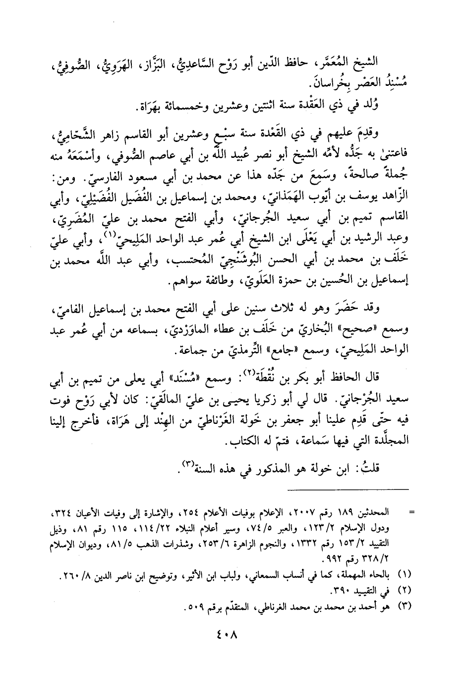 قَالَ الحَافِظ أَبُو بَكْر بن نُقْطَة [2] : وَسَمِعَ «مُسْنَد» أَبِي يَعْلَى من تميم بن أَبِي سَعِيد الْجُرْجَانِيّ. قَالَ لي أَبُو زكريا يَحْيَى بن عَليّ المالَقيّ: كَانَ لأبي رَوْح فوت فيه حَتَّى قَدِمَ علينا أَبُو جَعْفَر بن خَولة الغَرْناطيّ من الهند إلى هراة، فأخرج إلينا المجلَّدة التي فيها سماعة، فتمّ لَهُ الكتاب.