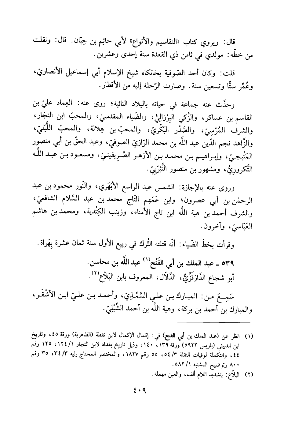 539- عبد الملك بن أَبِي الفَتْح [1] عَبْد اللَّه بن محاسن.