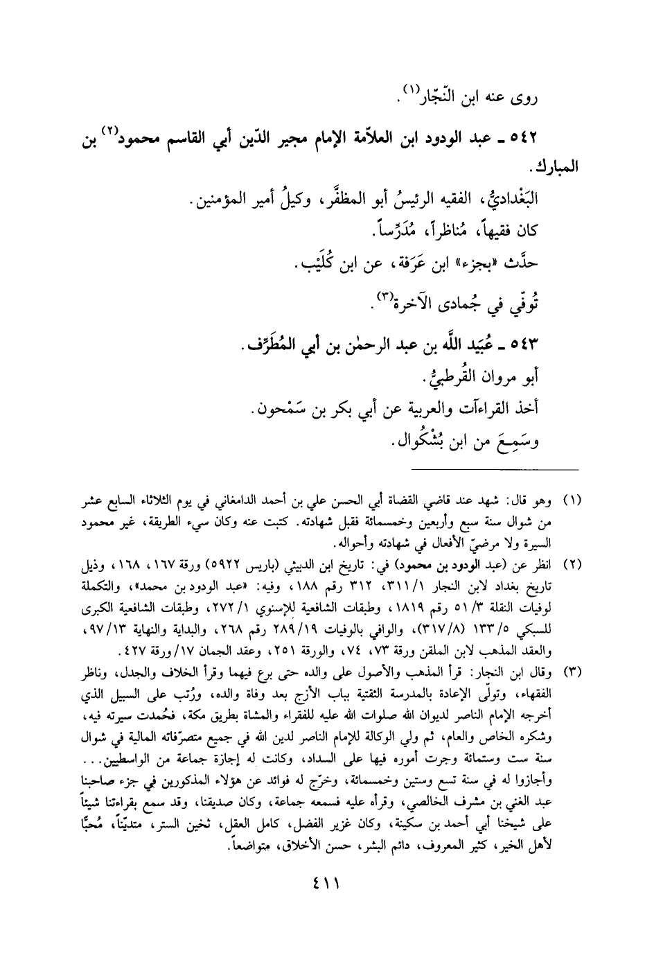 542- عَبْد الودود ابن العلّامة الإِمَام مجير الدِّين أَبِي الْقَاسِم محمود [2] بن المبارك.