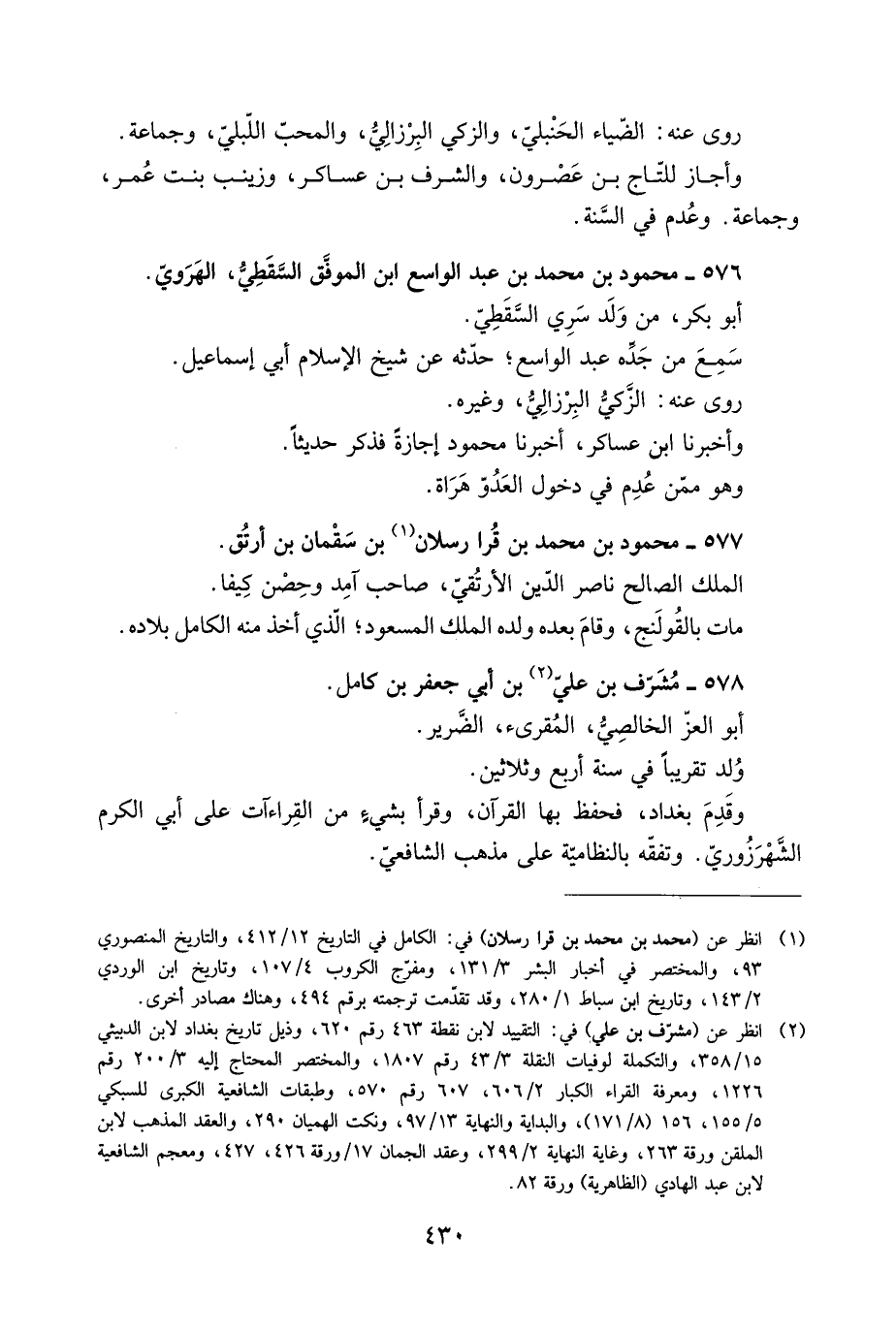 [2] انظر عن (مشرّف بن علي) في: التقييد لابن نقطة 463 رقم 620، وذيل تاريخ بغداد لابن الدبيثي 15/ 358، والتكملة لوفيات النقلة 3/ 43 رقم 1807، والمختصر المحتاج إليه 3/ 200 رقم 1226، ومعرفة القراء الكبار 2/ 606، 607 رقم 570، وطبقات الشافعية الكبرى للسبكي 5/ 155، 156 (8/ 171) ، والبداية والنهاية 13/ 97، ونكت الهميان 290، والعقد المذهب لابن الملقن ورقة 263، وغاية النهاية 2/ 299، وعقد الجمان 17/ ورقة 426، 427، ومعجم الشافعية لابن عبد الهادي (الظاهرية) ورقة 82.