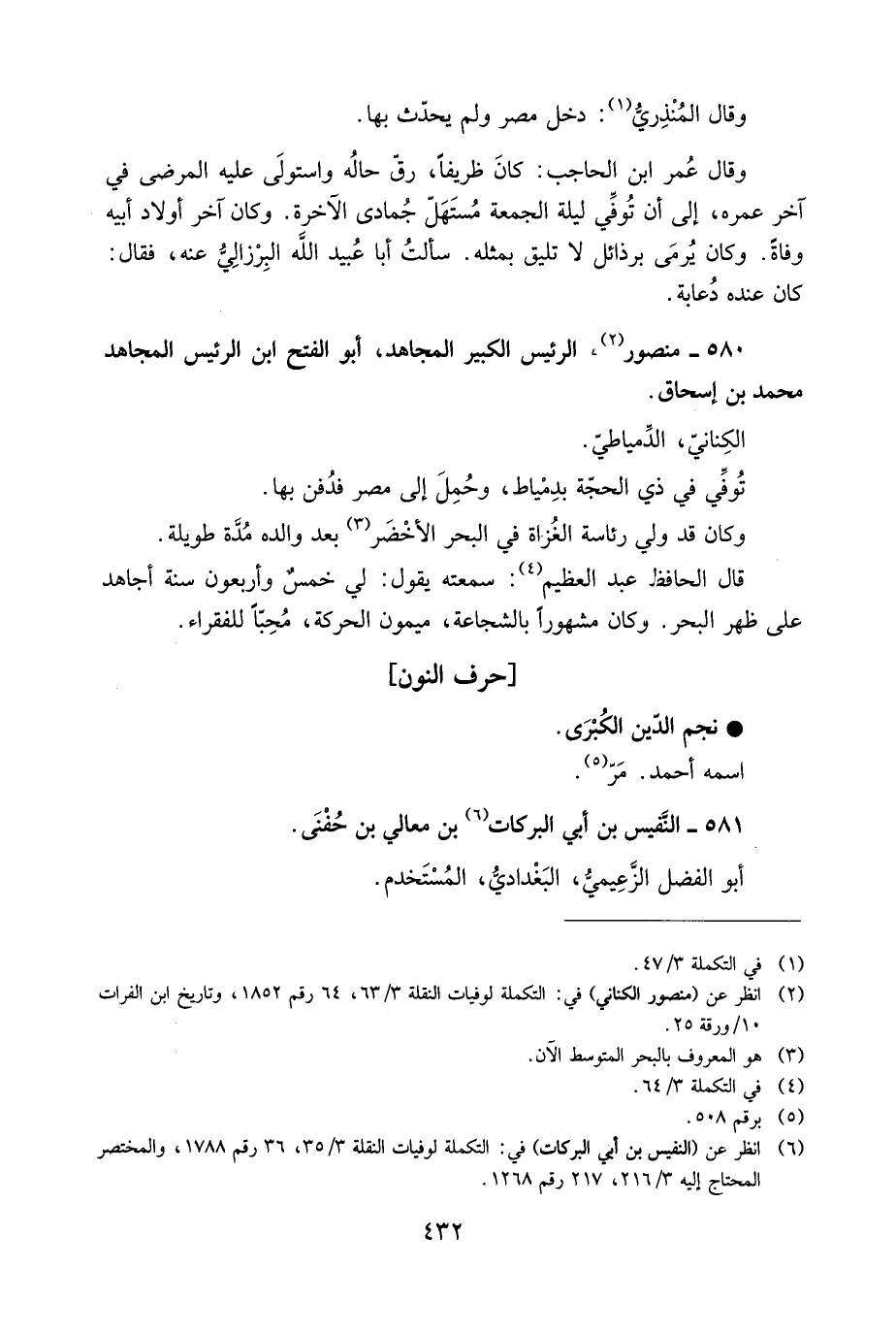[2] انظر عن (منصور الكناني) في: التكملة لوفيات النقلة 3/ 63، 64 رقم 1852، وتاريخ ابن الفرات 10/ ورقة 25.