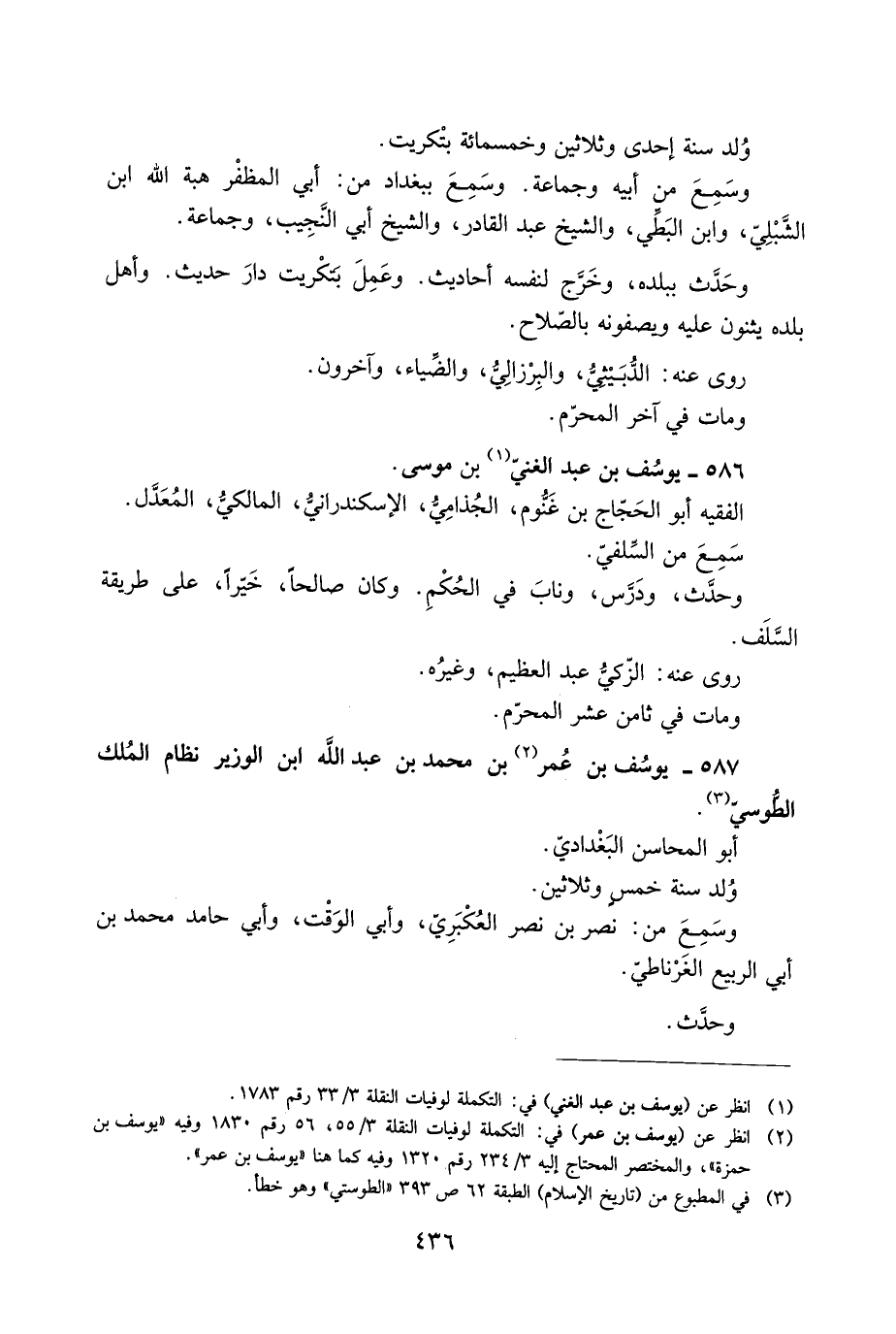 587- يوسف بْن عُمَر [2] بْن مُحَمَّدِ بْن عَبْد اللَّه ابن الوزير نظام المُلك الطُّوسِيّ [3] .
