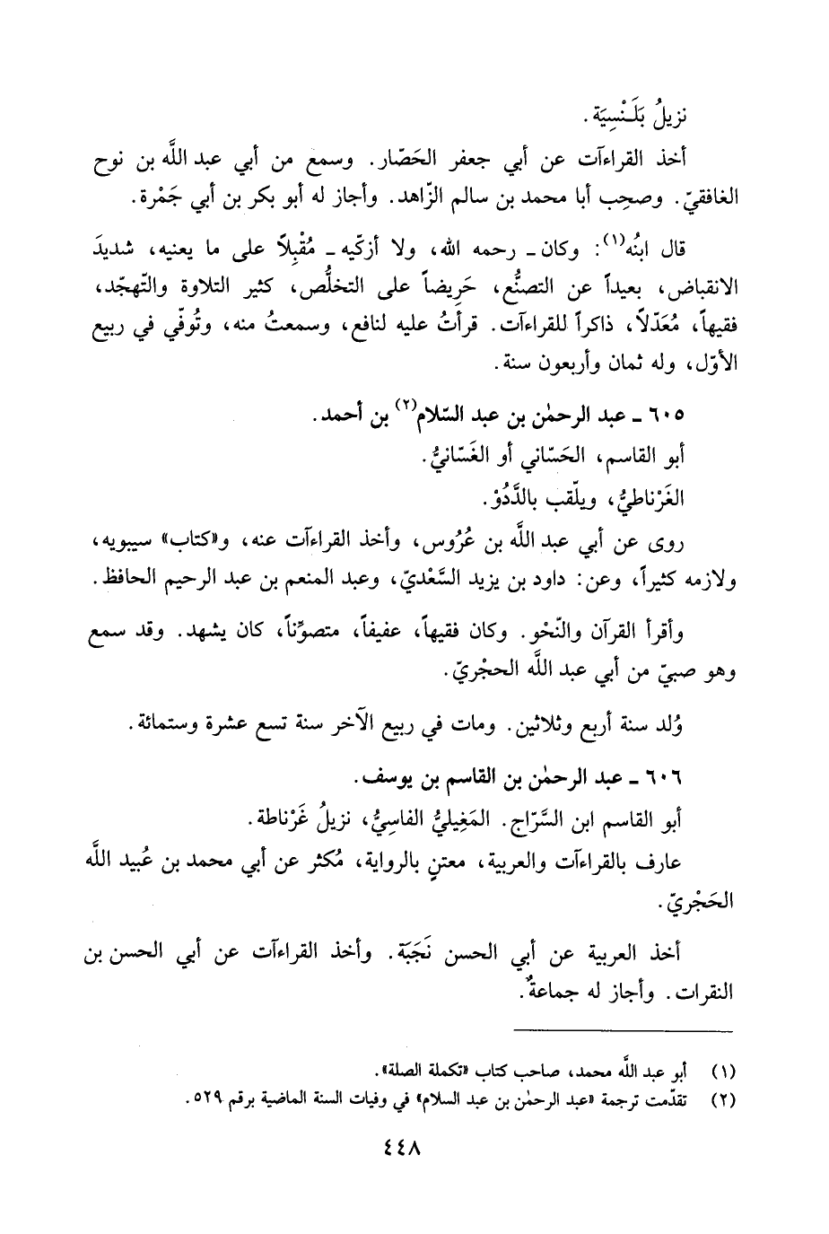 606- عَبْد الرَّحْمَن بن الْقَاسِم بن يوسف.