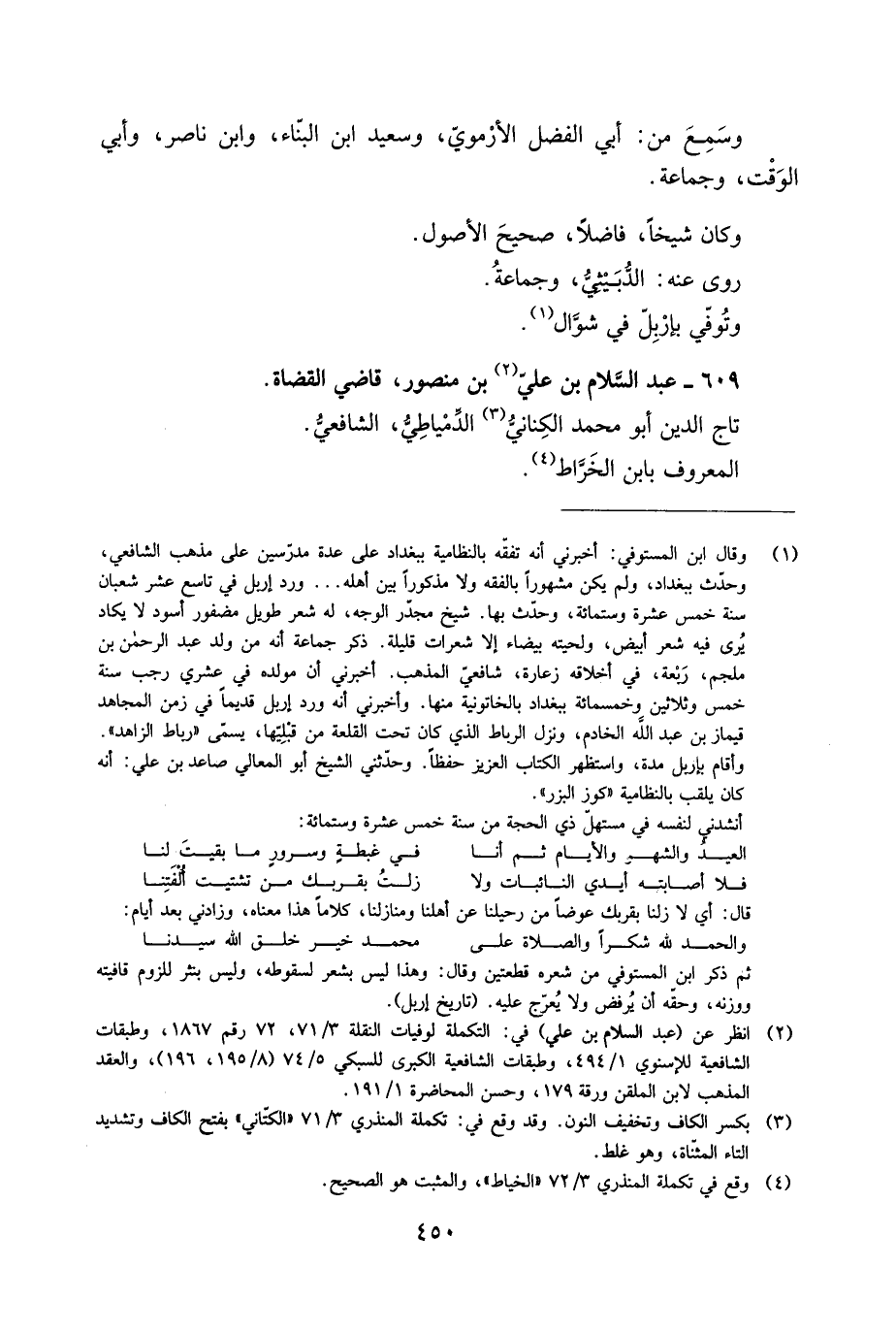 609- عَبْد السَّلَام بن عَليّ [2] بن منصور، قاضي القضاة.