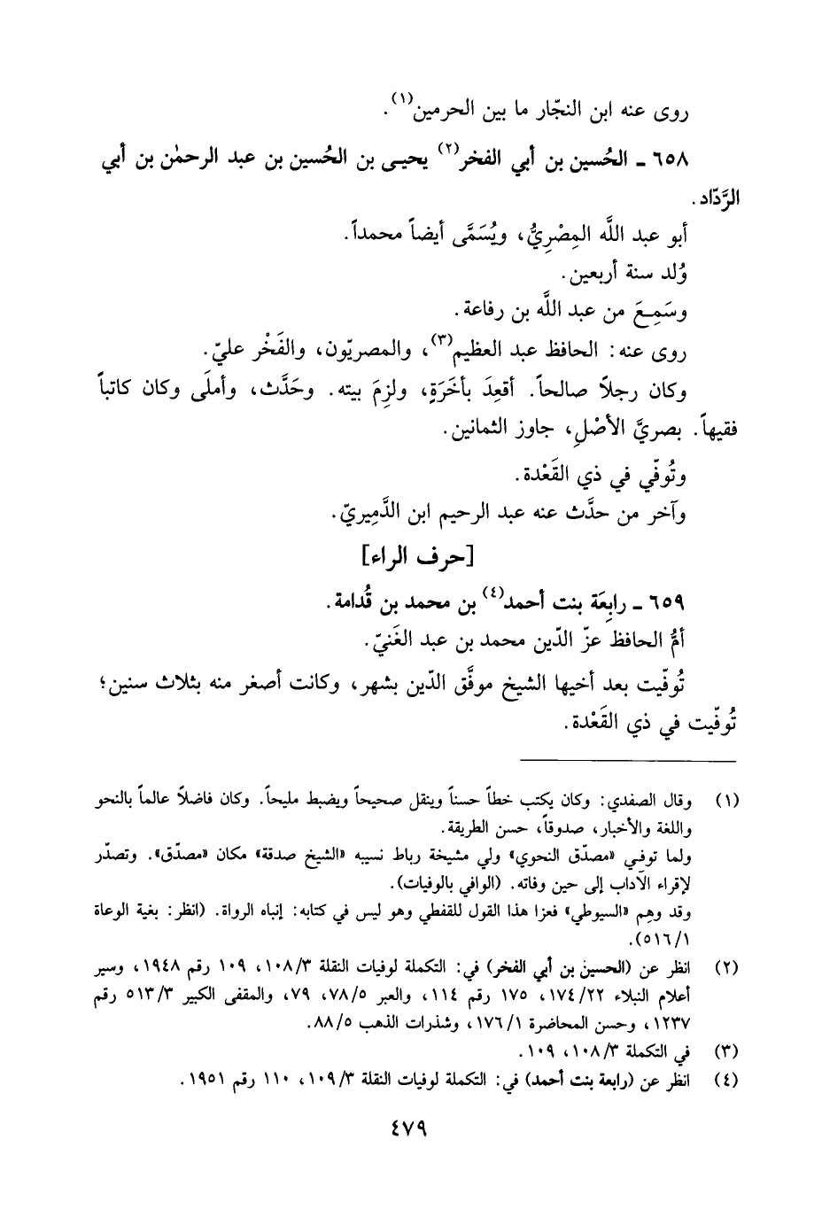 [2] انظر عن (الحسين بن أبي الفخر) في: التكملة لوفيات النقلة 3/ 108، 109 رقم 1948، وسير أعلام النبلاء 22/ 174، 175 رقم 114، والعبر 5/ 78، 79، والمقفى الكبير 3/ 513 رقم 1237، وحسن المحاضرة 1/ 176، وشذرات الذهب 5/ 88.