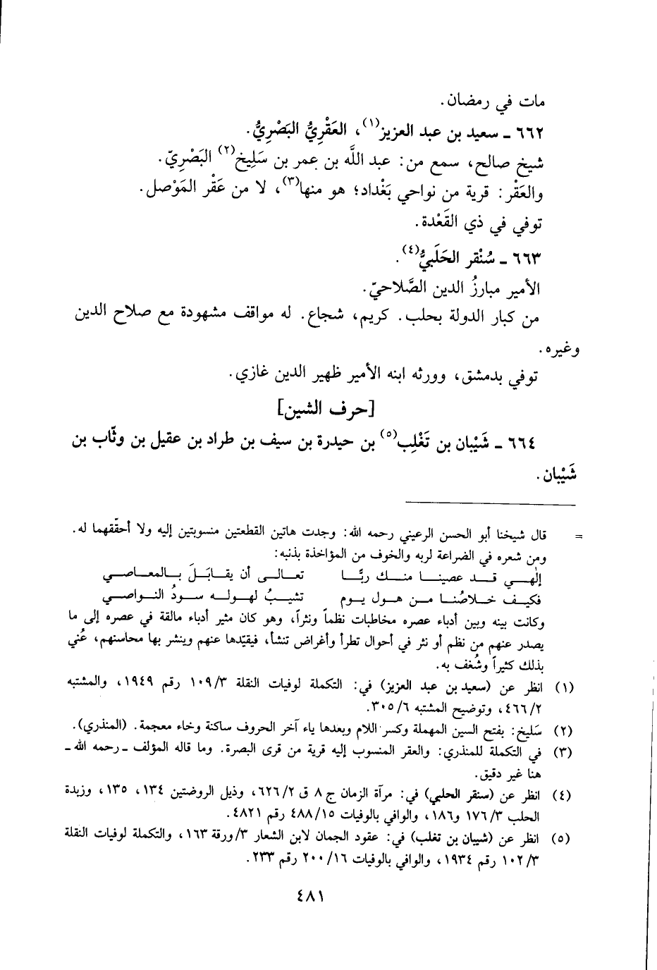 [5] انظر عن (شيبان بن تغلب) في: عقود الجمان لابن الشعار 3/ ورقة 163، والتكملة لوفيات النقلة 3/ 102 رقم 1934، والوافي بالوفيات 16/ 200 رقم 233.