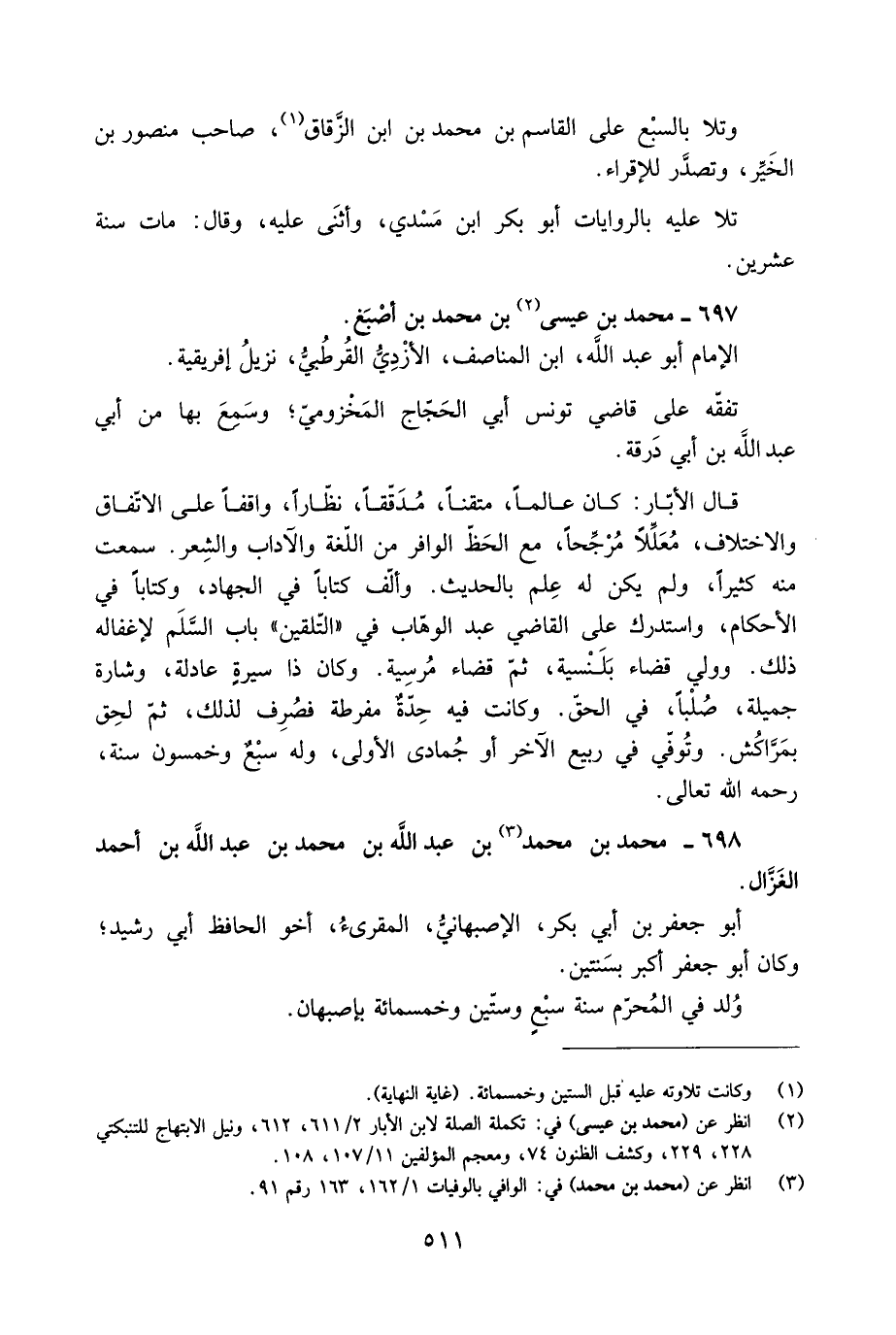 698- مُحَمَّد بْن مُحَمَّدِ [3] بْنِ عَبْدِ اللَّهِ بْنِ مُحَمَّدِ بْنِ عَبْدِ الله بن أَحْمَد الغَزَّال.