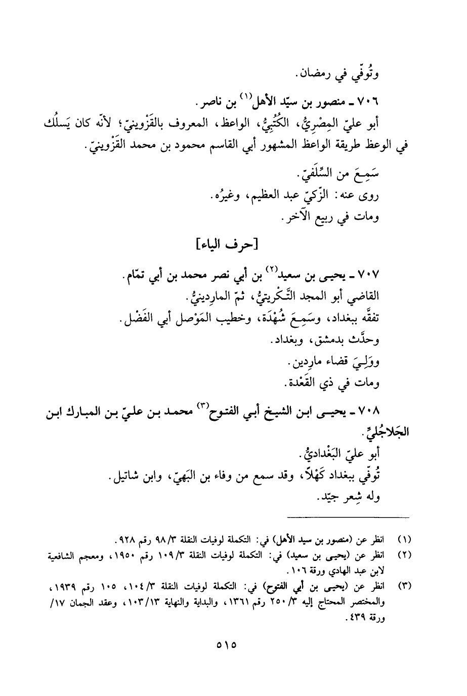 [2] انظر عن (يحيى بن سعيد) في: التكملة لوفيات النقلة 3/ 109 رقم 1950، ومعجم الشافعية لابن عبد الهادي ورقة 106.