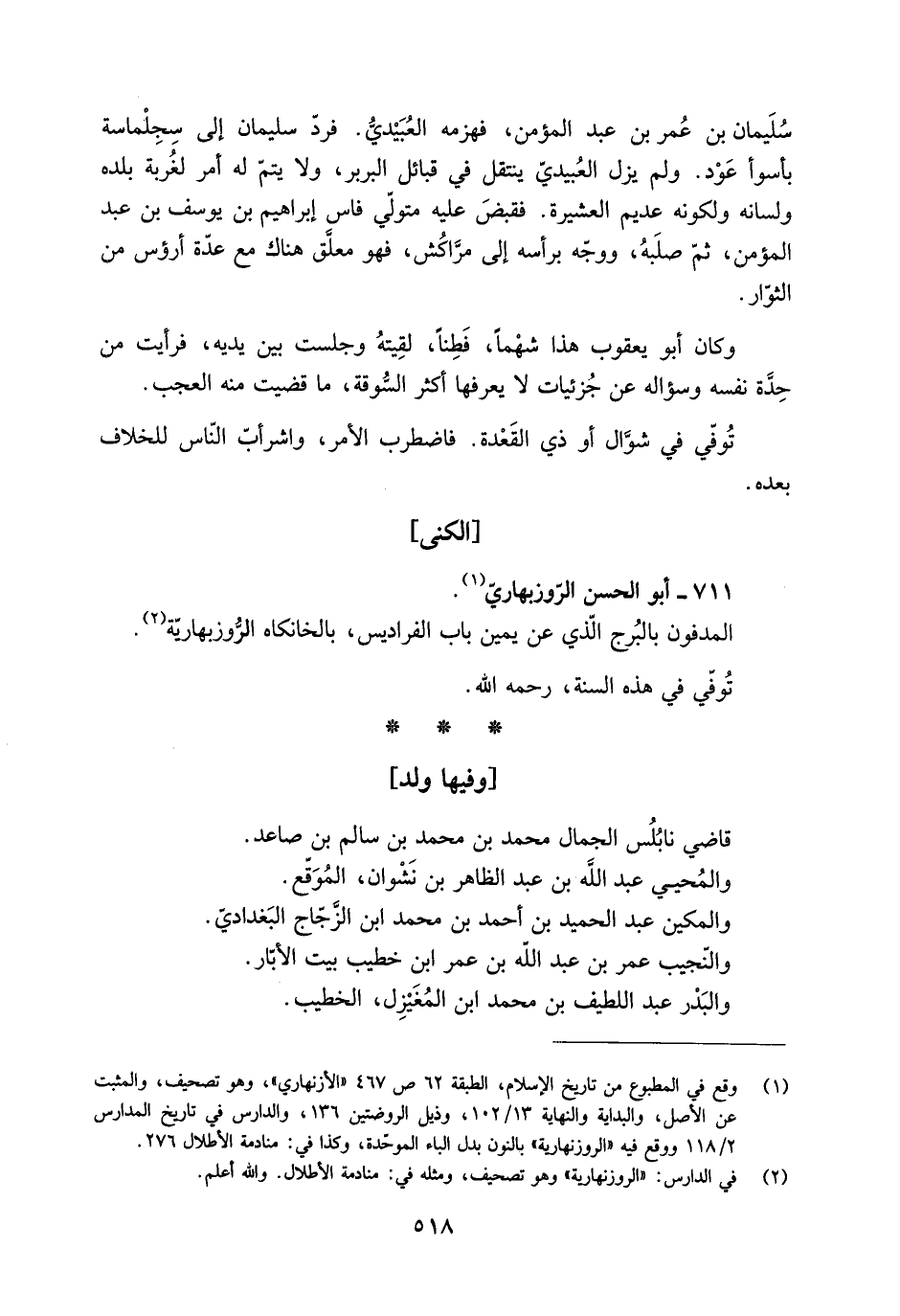 [2] في الدارس: «الروزنهارية» وهو تصحيف، ومثله في: منادمة الأطلال. والله أعلم.