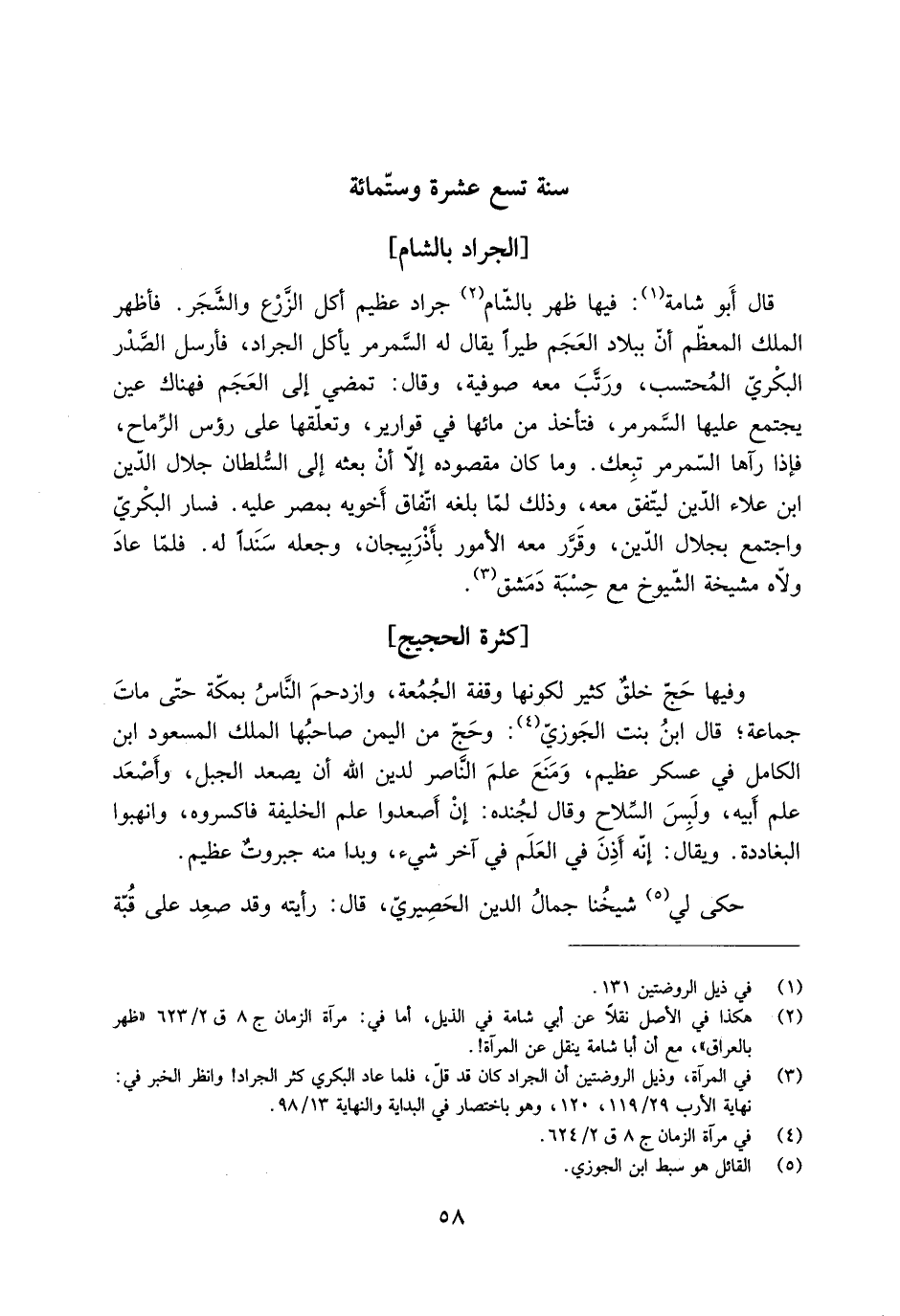 [3] في المرآة، وذيل الروضتين أن الجراد كان قد قلّ، فلما عاد البكري كثر الجراد! وانظر الخبر في: