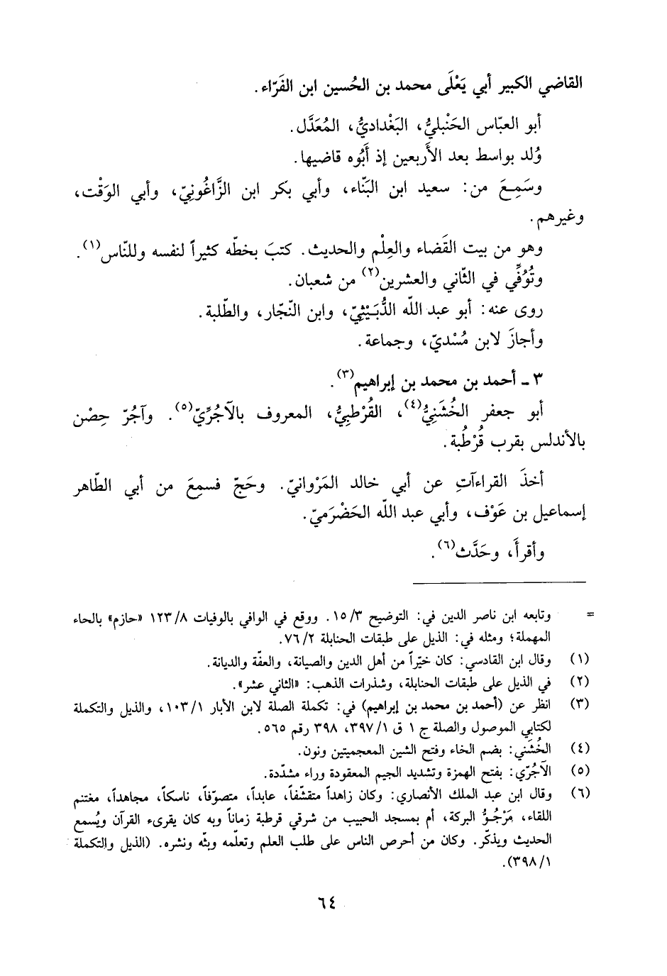 القاضي الكبير أَبِي يَعْلَى مُحَمَّد بن الحُسَيْن ابن الفرّاء.