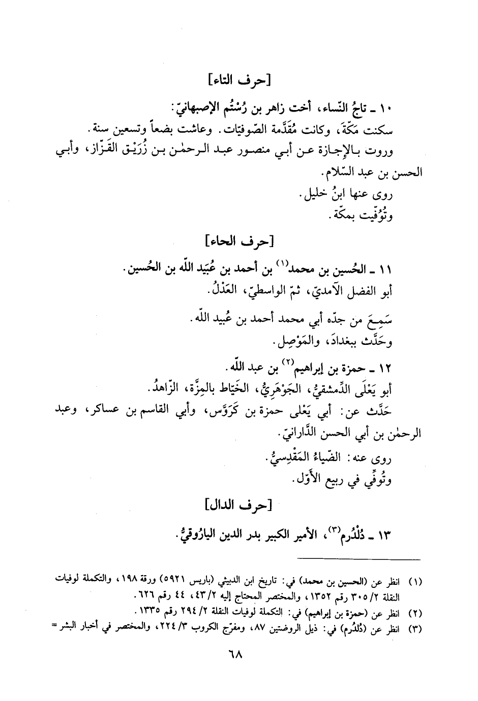 [1] انظر عن (الحسين بن محمد) في: تاريخ ابن الدبيثي (باريس 5921) ورقة 198، والتكملة لوفيات النقلة 2/ 305 رقم 1352، والمختصر المحتاج إليه 2/ 43، 44 رقم 626.