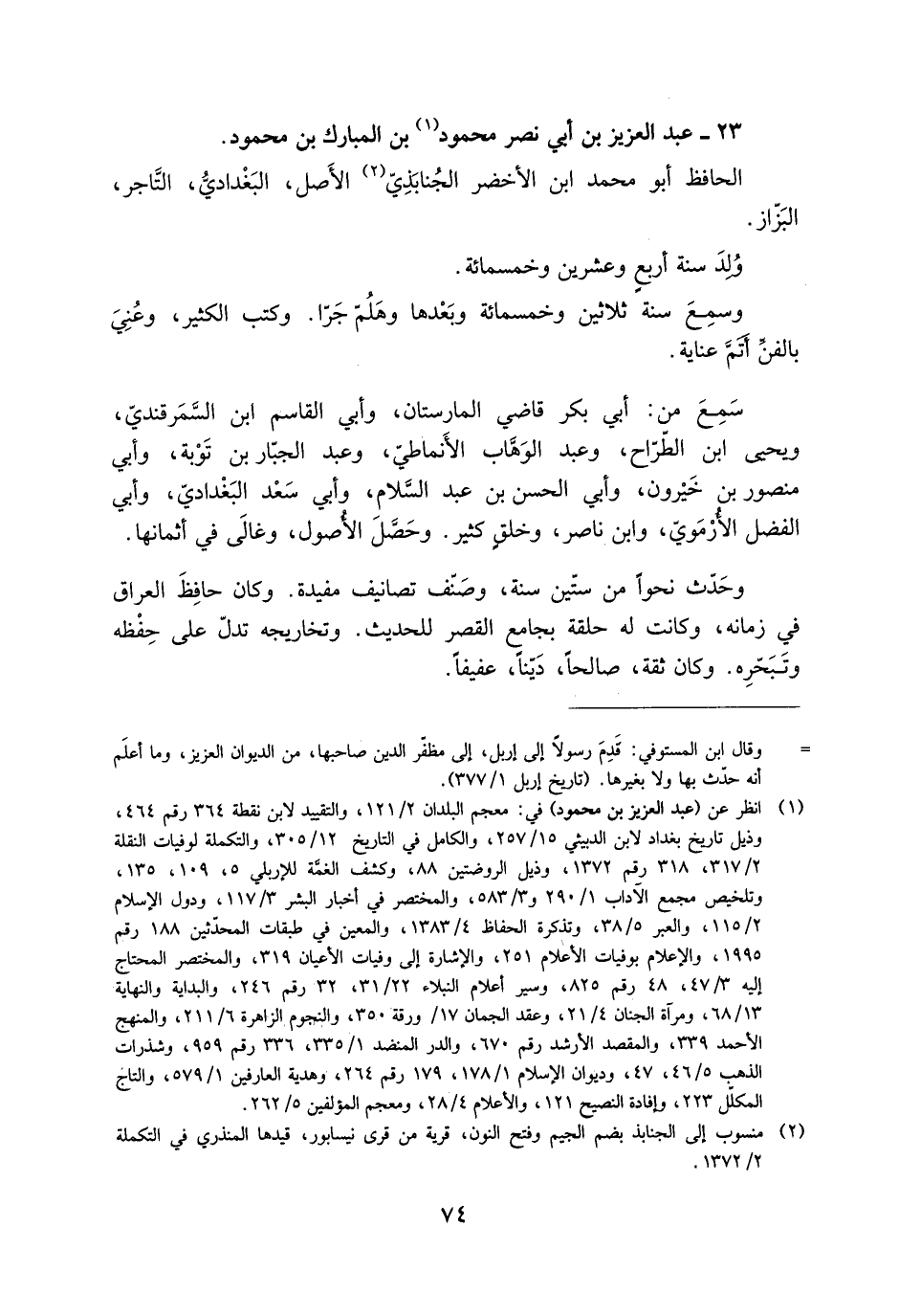 [2] منسوب إلى الجنابذ بضم الجيم وفتح النون، قرية من قرى نيسابور، قيدها المنذري في التكملة 2/ 1372.