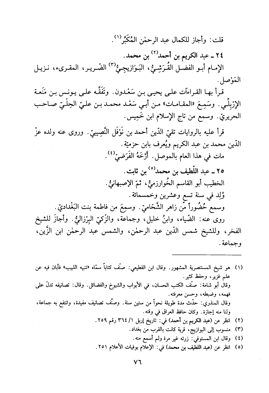 [2] انظر عن (عبد الكريم بن أحمد) في: تاريخ إربل 1/ 364 رقم 259.
