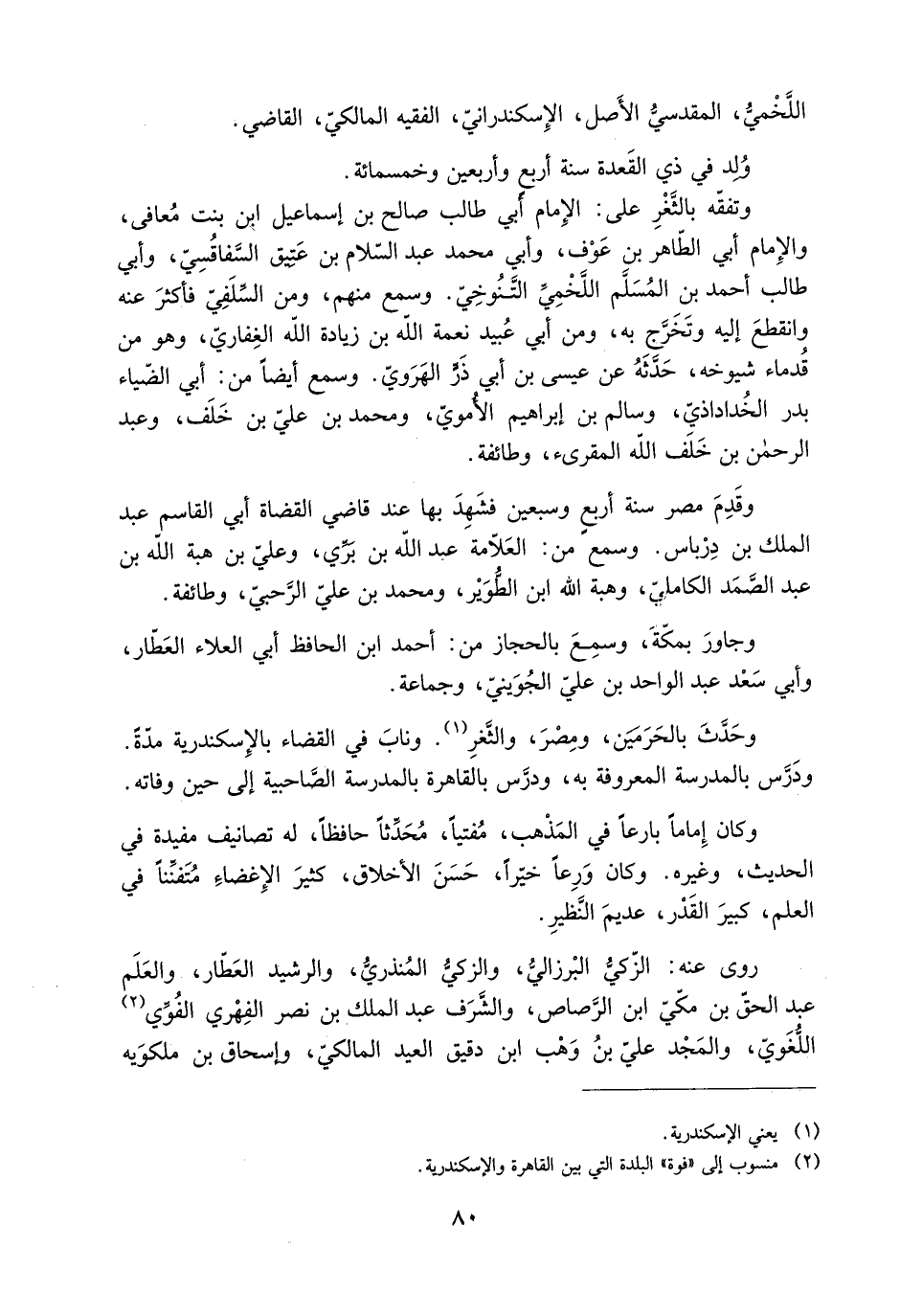 اللَّخْمي، المَقْدِسِيّ الْأصل، الإسكندرانيّ، الفقيه المالكيّ، القاضي.