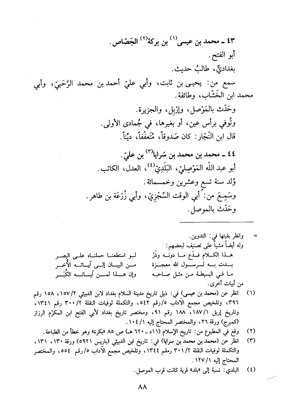 43- مُحَمَّد بن عيسى [1] بن بركة [2] الجصّاص.