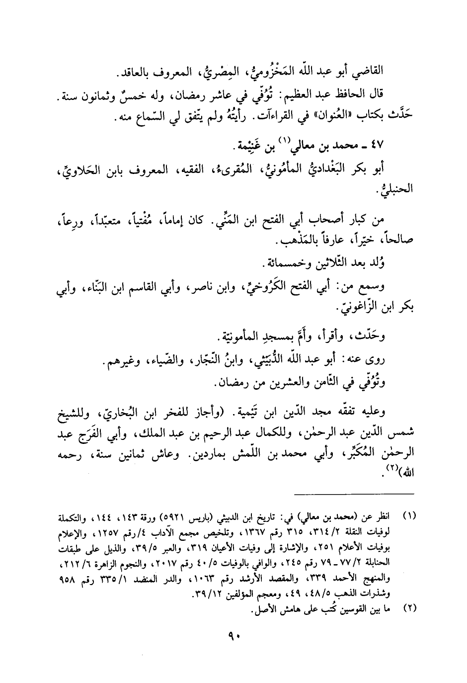 47- مُحَمَّد بن معالي [1] بن غَنِيمة.