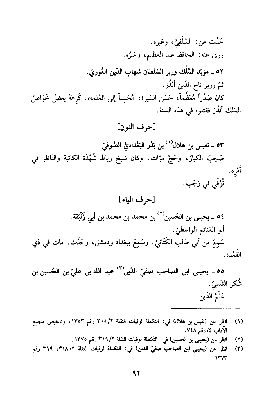 53- نفيس بن هلال [1] بن بَدْر البَغْدَادِيّ الصُّوفِيّ.