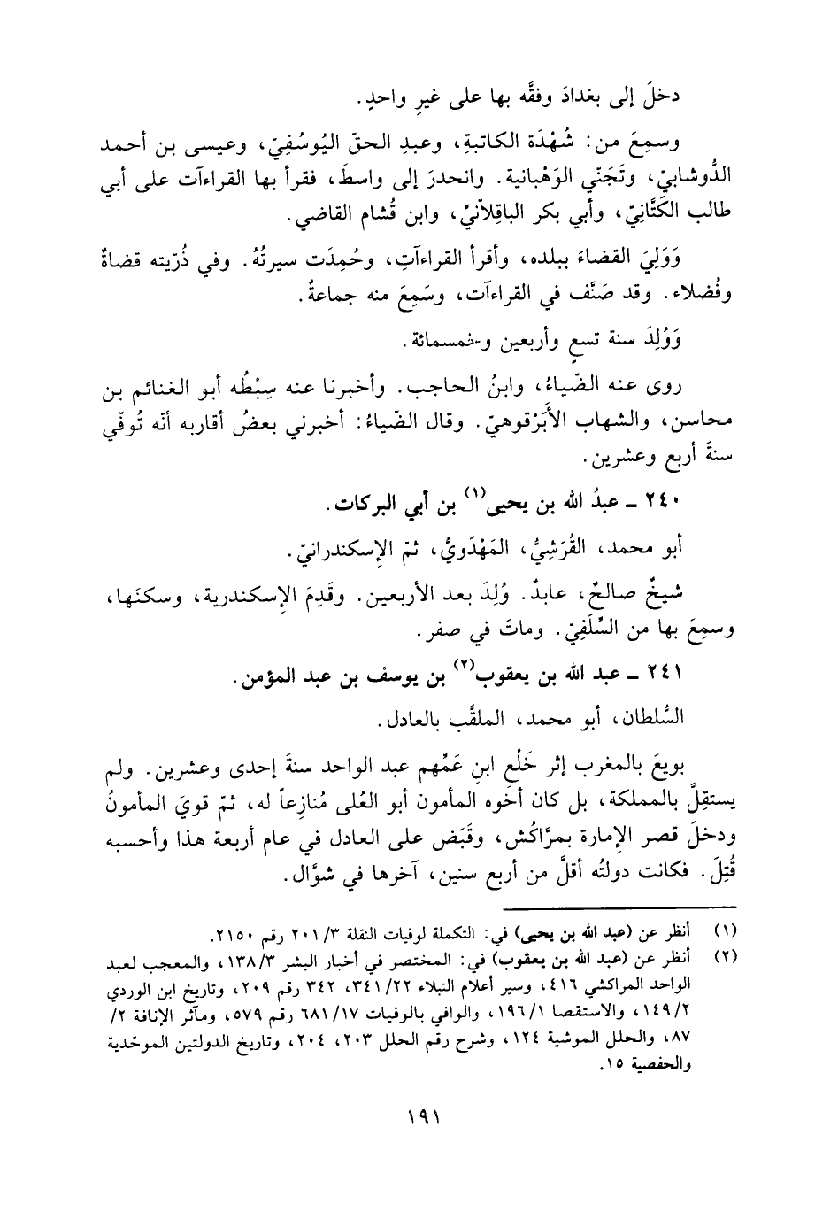 240- عبدُ الله بن يحيى [1] بن أبي البركات.
