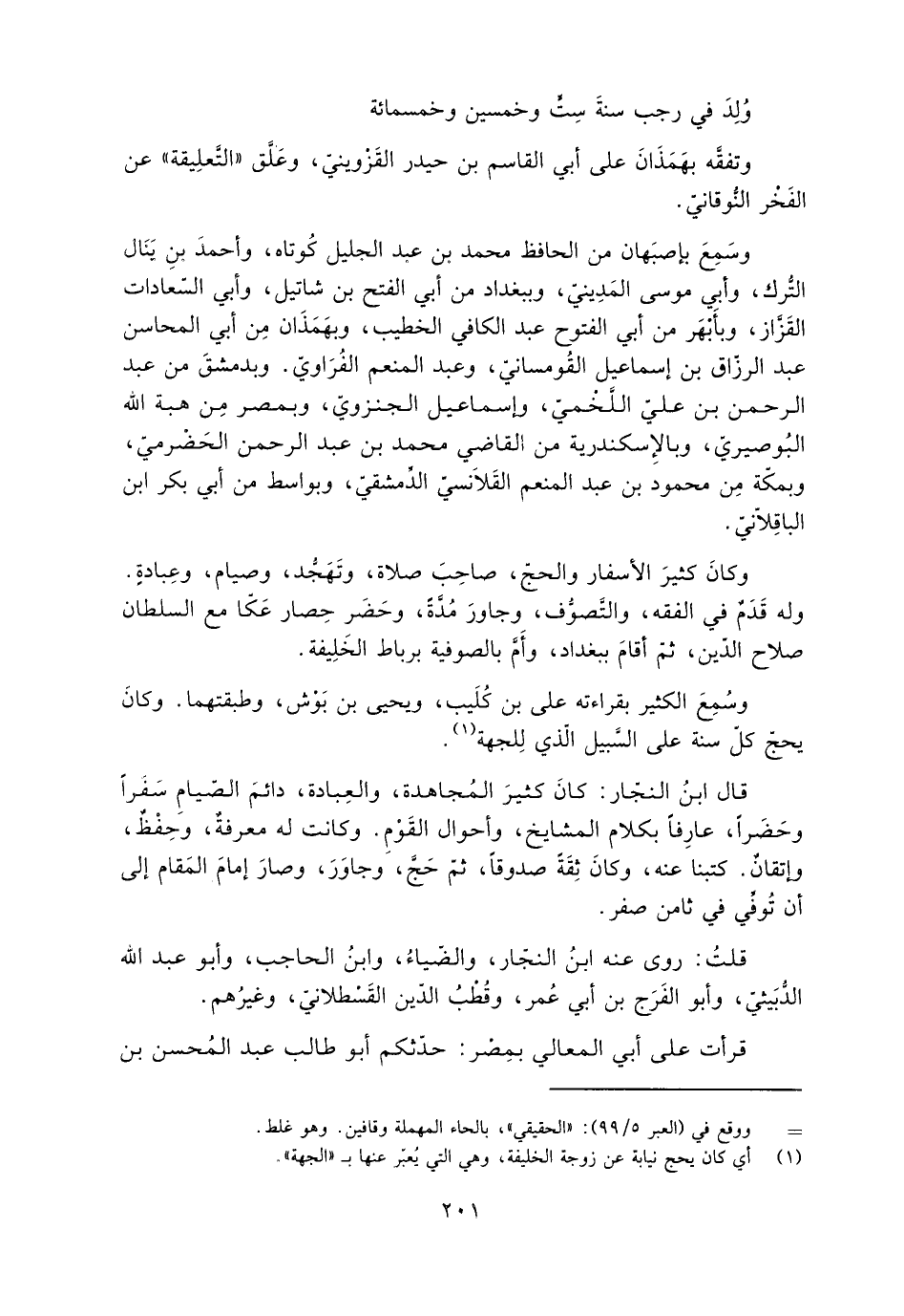 [ () ] ووقع في (العبر 5/ 99) : «الحقيقي» ، بالحاء المهملة وقافين. وهو غلط.