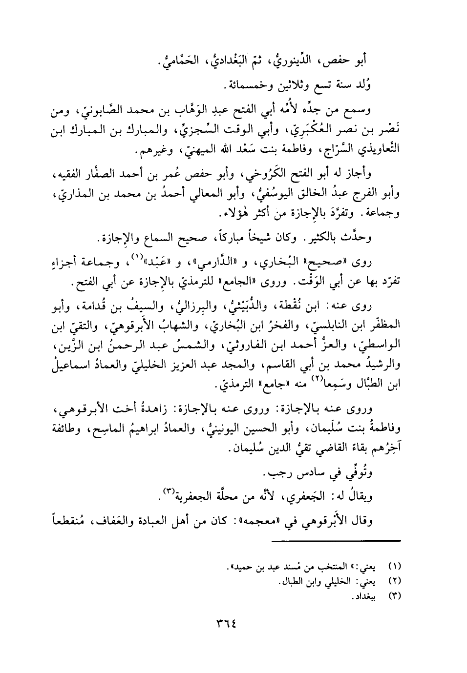 أبو حفص، الدَّينَوريُّ، ثمّ البَغْداديُّ، الحَمَّاميُّ.