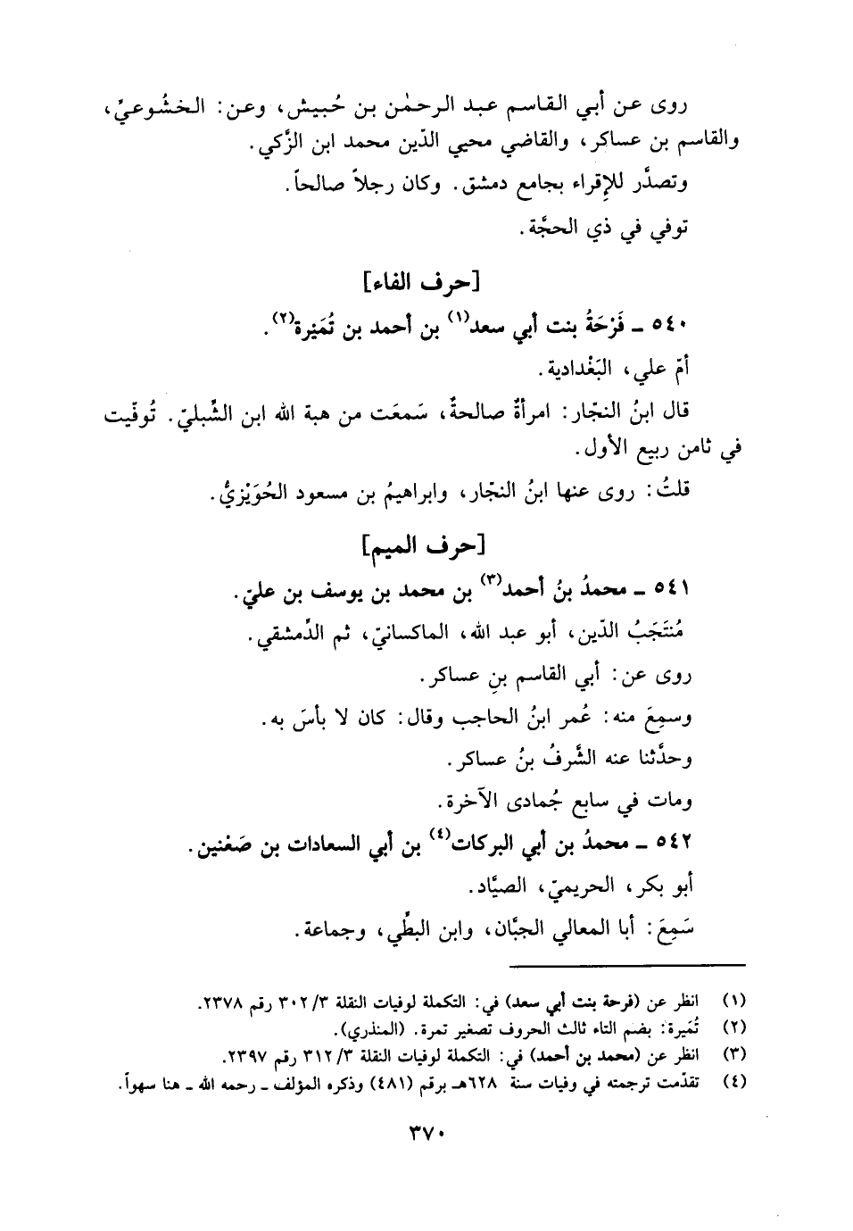 [4] تقدّمت ترجمته في وفيات سنة 628 هـ- برقم (481) وذكره المؤلف- رحمه الله- هنا سهوا.