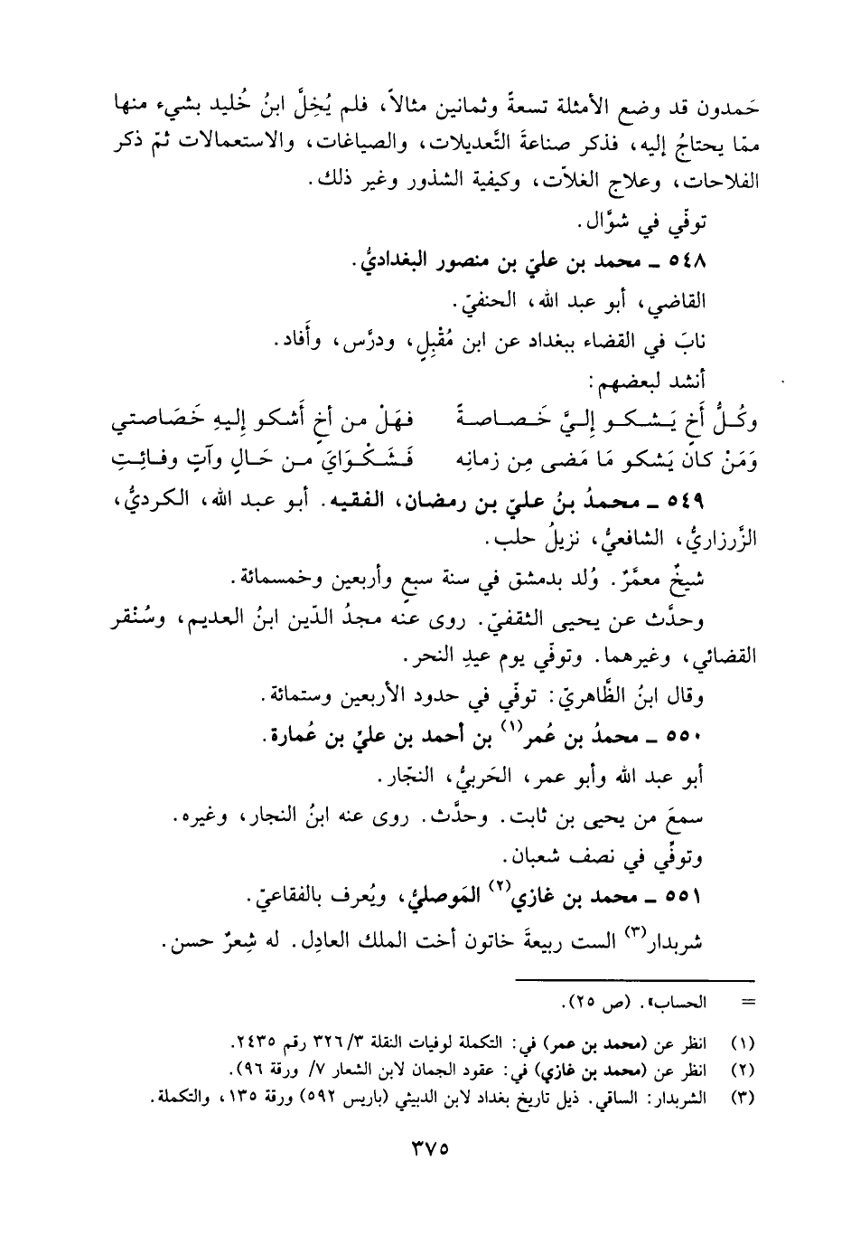 549- مُحَمَّدُ بن عليّ بن رمضان، الفقيه. أبو عبد الله، الكرديُّ، الزَّرزاريُّ، الشافعيّ، نزيلُ حلب.