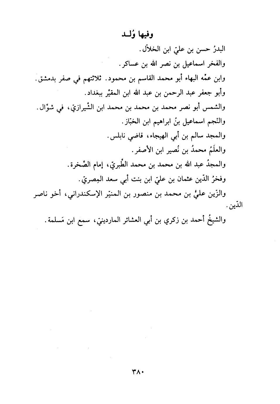وفيها ولد البدر حسن بن عليّ ابن الخلّال.