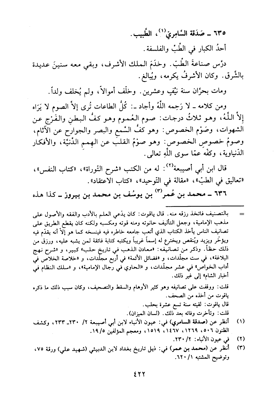 [1] انظر عن (صدقة السامري) في: عيون الأنباء لابن أبي أصيبعة 2/ 230- 233، وكشف الظنون 506، 1269، 1467، 1519، ومعجم المؤلفين 5/ 19.