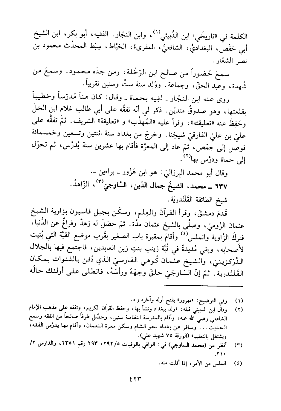 [3] انظر عن (محمد الساوجي) في: الوافي بالوفيات 5/ 292، 293 رقم 2351، والدارس 2/ 210.