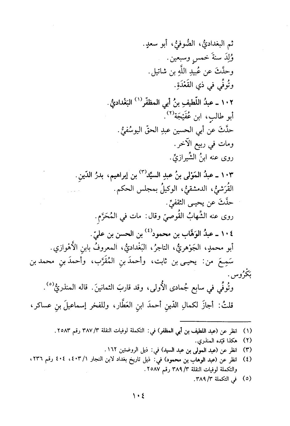 104- عَبْد الوهّاب بْن محمود [4] بْن الْحُسَن بْن عَلِيّ.