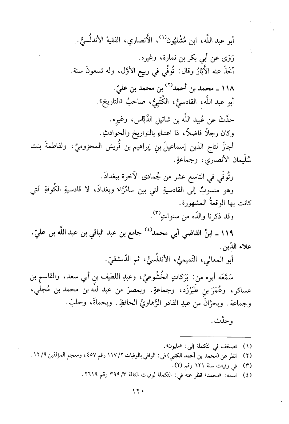 [4] اسمه: «محمد» انظر عنه في: التكملة لوفيات النقلة 3/ 399 رقم 2619.