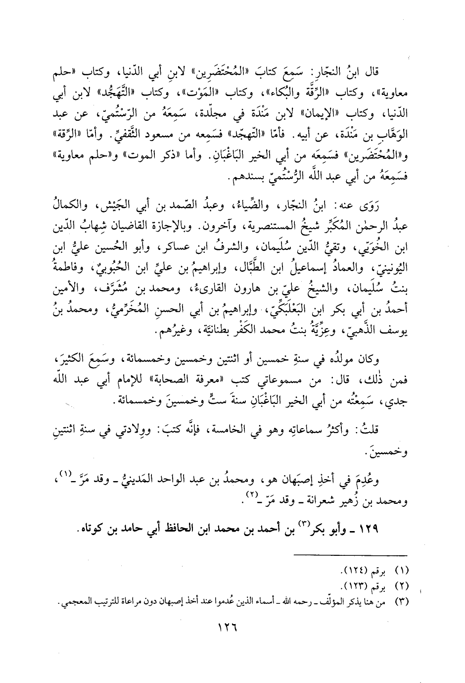 129- وأَبُو بَكْر [3] بن أحمد بن محمد بن الحافظ أبي حامد بن كوتاه.