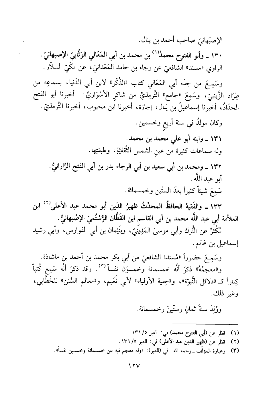 130- وأَبُو الفتوح مُحَمَّد [1] بْن مُحَمَّد بْن أَبِي المَعَاليّ الوَثابيّ الأصبهانيّ.